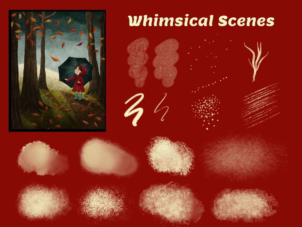 I create and assemble various types of brushes in my classes that help people achieve the look that's taught in a particular class. Many people who are not on Skillshare ask if they can please buy my brushes which is why they are here! This is a combination of brushes from 6 of my Skillshare classes! I love texture so many of them are gorgeous texture brushes.